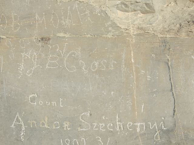 The entire city is built on a terraced plateau, which one reaches by climbing a monumental staircase. The steps are shallow, we are told, so that visiting dignitaries could mount them gracefully in their flowing robes. At the top, one passes between two enormous slabs which have been sculpted with beautiful bas-reliefs. Incongruously, at eye level, the stones have been covered with a range of graffitis from late 19th century and early 20th century explorers. I noticed at least one “count” something or other, a Gentleman Explorer for sure, and I tried to imagine what his trip to Persepolis must have been like and what the city would have looked like with many important monuments still hidden under sand.