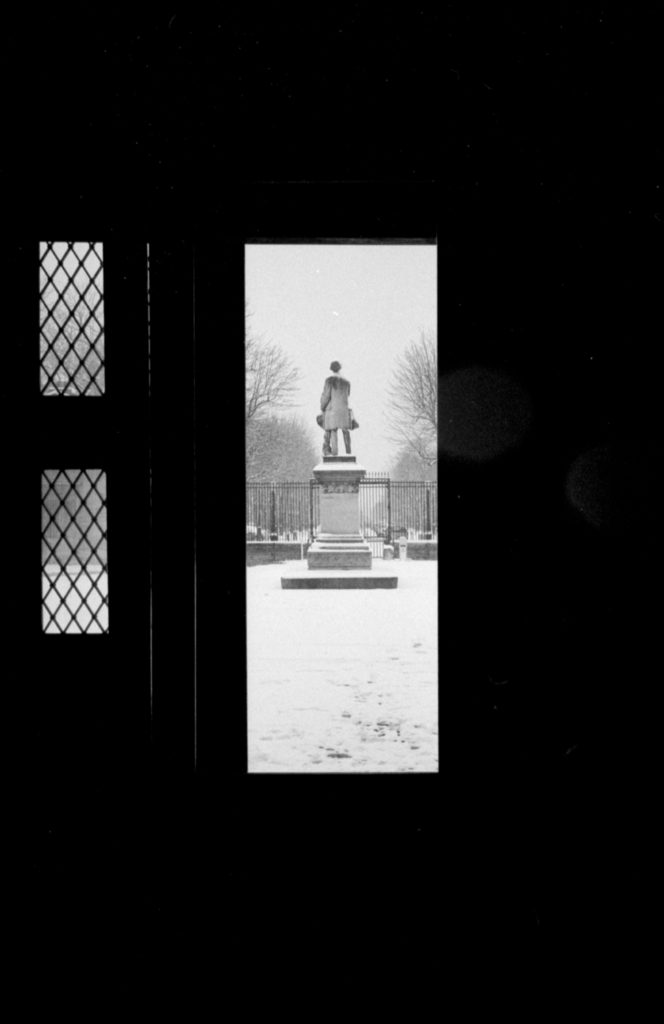 In front of the main building there is a statue of Urbain Le Verrier. Here you can see him, through the front door of the Observatory, lightly dusted by snow.