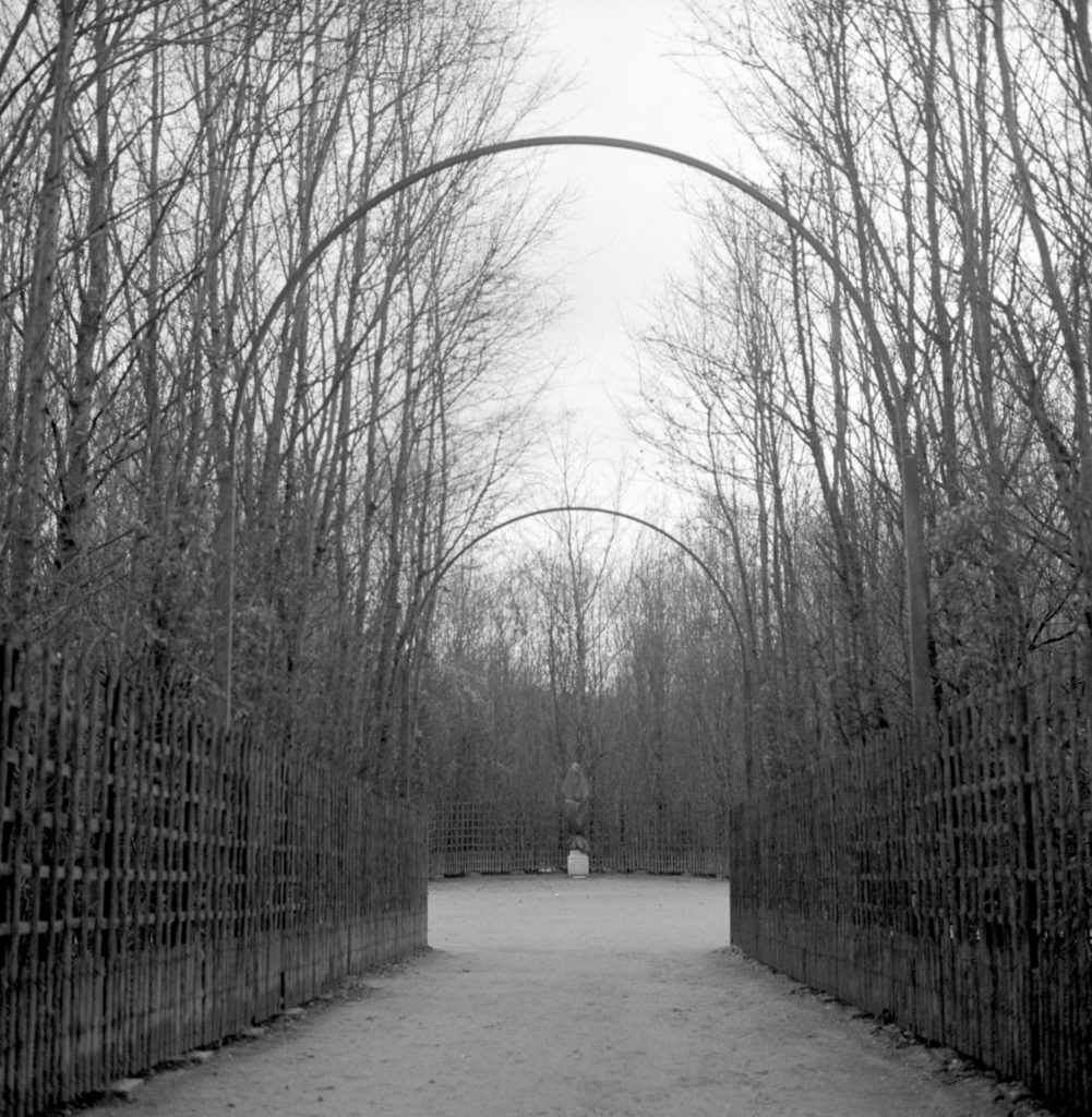 It’s the end of the year. And the last photograph in this series. The sky is overcast. It is what they call on the photography forums a “flat day” (it took me a long while to understand what that meant). There was never a day flatter than this. But I am in Versailles, and I never tire of going to the gardens there. I brought my recently-repaired Rolleiflex with me, loaded up with my last roll of Tri-X.