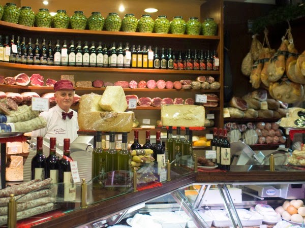 We arrived there in the middle of the afternoon last Wednesday. Our aeroplane banked low as we approached the city and there was a wonderful evening light shining on colli bolognesi. There, on a hill by itself I could see the San Luca church, together with the two towers one of the symbols of the city. From the airport we took a taxi, and in a few minutes we were at the hotel, the hotel “Universita” where I stayed during my very first visit to Bologna. A few minutes afterwards, we were in the streets of Bologna. We were very hungry, Air France these days practice starvation diets even on flights leaving around lunchtime. So, we ate some piadini in a cafe underneath the arcades on the via independezia before heading out to visit the city. Our meeting would not start until the next day, and we had a few hours of shopping before the evening meal. I knew exactly where I wanted to go.