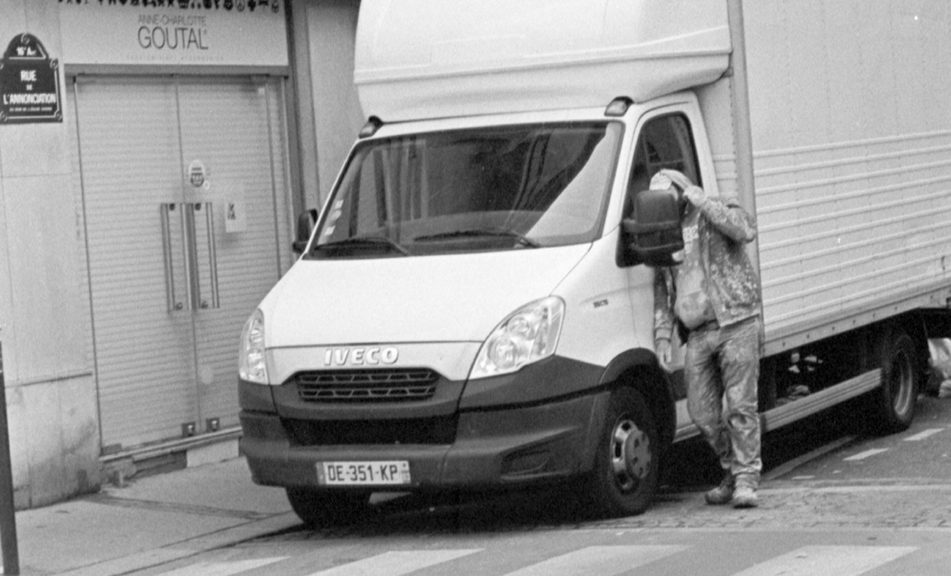 In real life these are just some unexceptional worn-out trees at one end of Montsouris. Actually I tried to print this image in the lab on very large paper, in the cupboard there is a box of Kodak film paper that dates from I don’t know when. I cranked up the enlarger to the highest setting and then some, exposed the paper, discovered of course the paper was much too big for the development bath, poured the dev bath into a big bath I had found under the sink (which hadn’t be used for years either and was full of small dead insects), realised of course I’d need some stop and fixer too, poured back the dev, poured in and out the stop and fixer, somehow managed to dry the print. Now, after a few weeks, not surprisingly, the print has turned grey, but I can’t bring myself to throw it away…